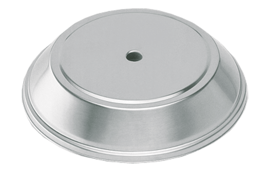 Stainless steel cloche, single-walled with a finger hole & groove, for plates with a max. diameter of 255 mm, 49 mm high - for use with banquet trolleys.