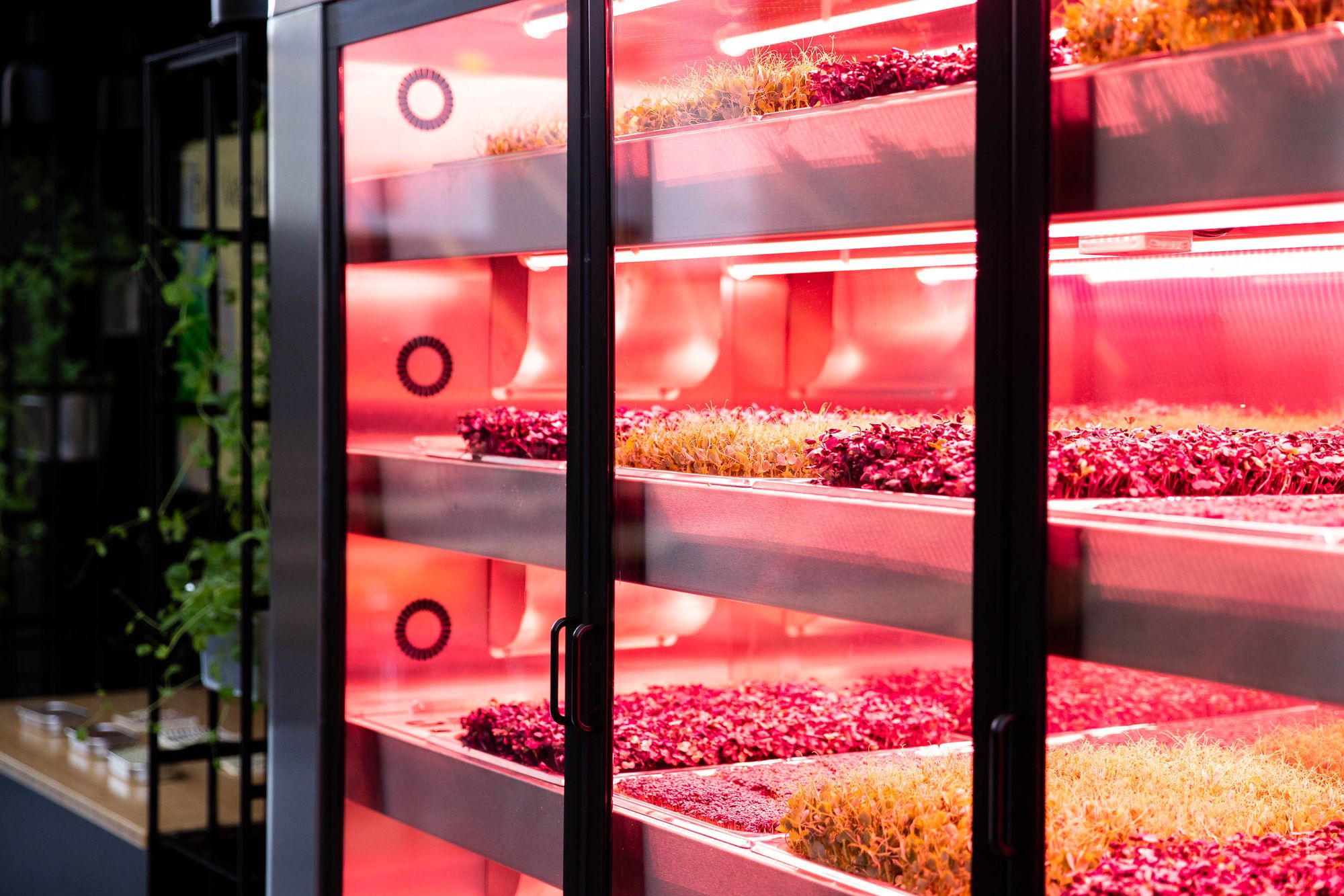 A fully integrated irrigation, water and air filtration system continuously supplies the plants with clean water and filtered air. Automatic temperature regulation and precision LED lighting ensure optimal germination and growth conditions at every stage. The closed system maintains a hygienic, germ-free environment where all parameters are constantly monitored. The result: vigorous, aromatic microgreens of consistently high quality – independent of climate, season or location.